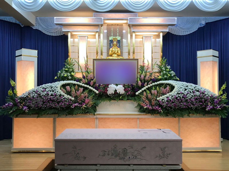 一般的に御棺に入れられる花は限られますが、当社では、好きなだけ祭壇の花を御棺に入れて頂くことができ、華やかに故人様をお見送りして頂けます。