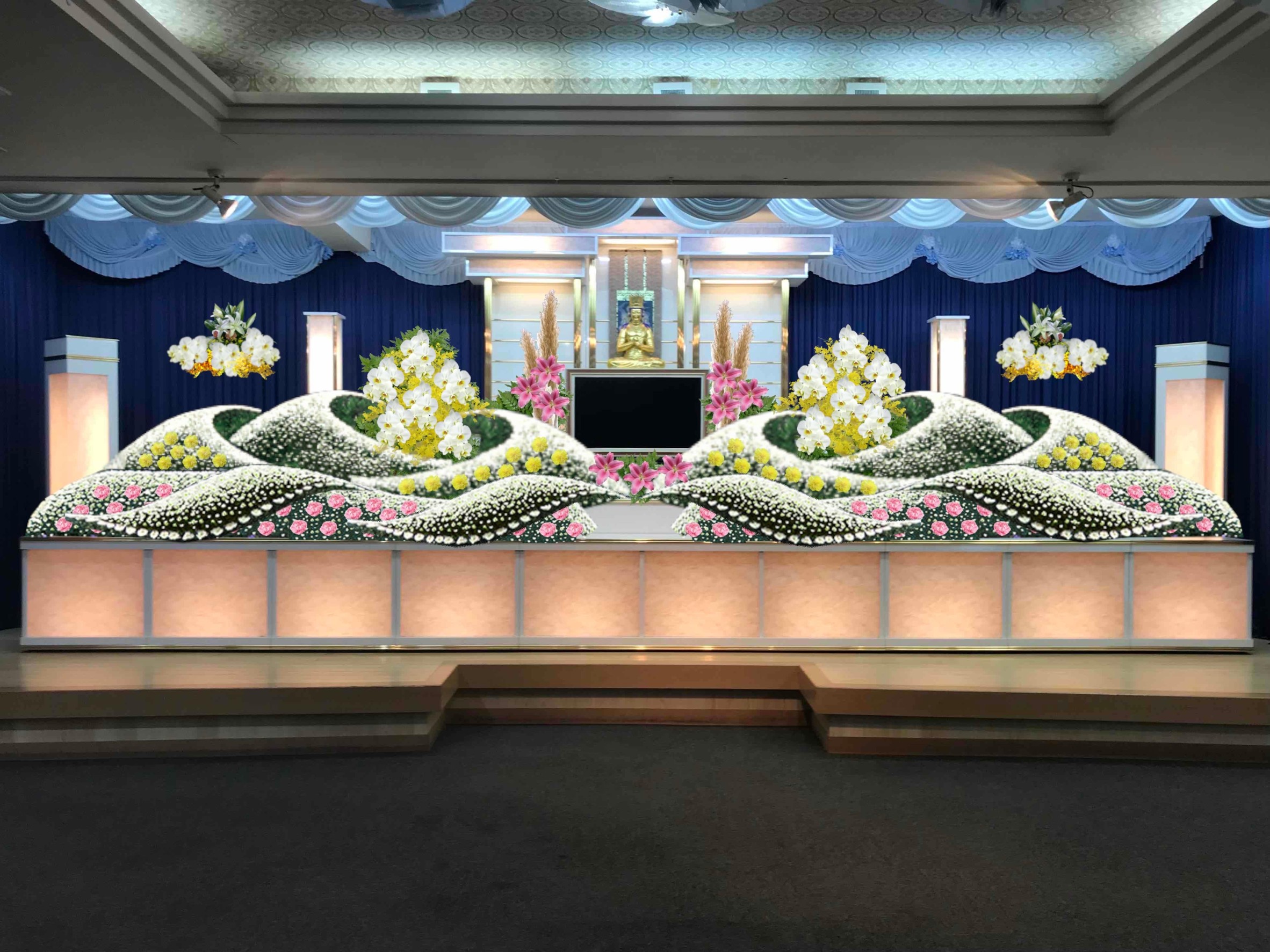 曲線ラインの生花祭壇 リムジン付き 49日生花