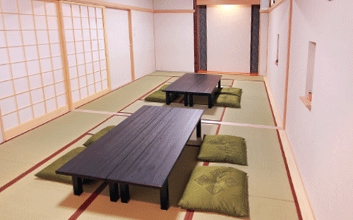 通夜振る舞いのお食事や、精進上げ料理などをお召し上がりいただける場所です。また、ご会葬者にご休憩もいただいたり、モニターにてお式のご様子をご覧いただけます。